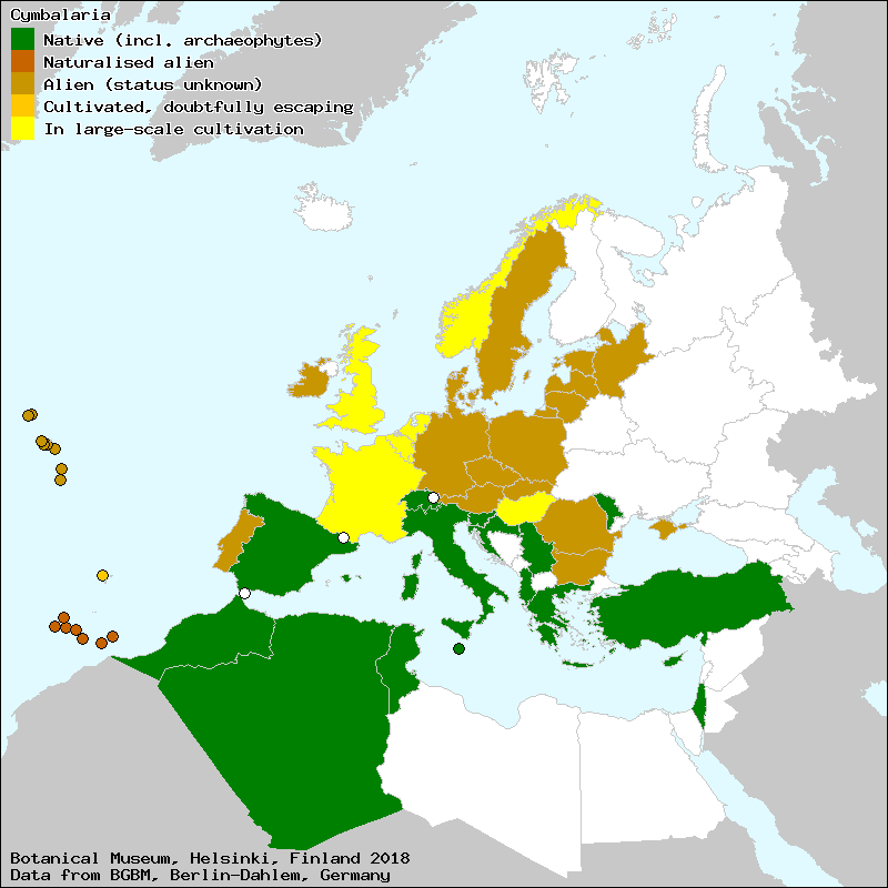 Marhold, K. (2011+): Cymbalaria. – In: Euro+Med Plantbase - the information resource for Euro-Mediterranean plant diversity. This work is licensed under a Creative Commons Attribution-ShareAlike 3.0 Unported license (CC-By-SA-3.0 Unported).
