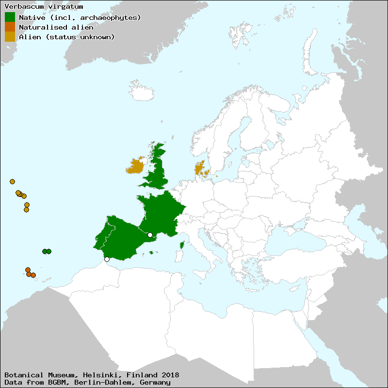 Marhold, K. (2011+): Verbascum. – In: Euro+Med Plantbase - the information resource for Euro-Mediterranean plant diversity. This work is licensed under a Creative Commons Attribution-ShareAlike 3.0 Unported license (CC-By-SA-3.0 Unported).