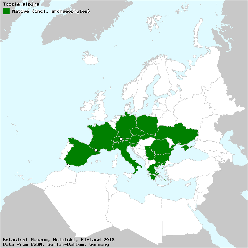 Marhold, K. (2011+): Tozzia. – In: Euro+Med Plantbase - the information resource for Euro-Mediterranean plant diversity. This work is licensed under a Creative Commons Attribution-ShareAlike 3.0 Unported license (CC-By-SA-3.0 Unported).