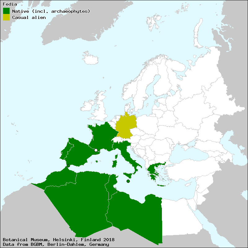 Raab-Straube, E. von (2017+): Fedia. – In: Raab-Straube, E. von & Henning, T. (2017+): Valerianaceae. Euro+Med Plantbase - the information resource for Euro-Mediterranean plant diversity. This work is licensed under a Creative Commons Attribution-ShareAlike 3.0 Unported license (CC-By-SA-3.0 Unported).
