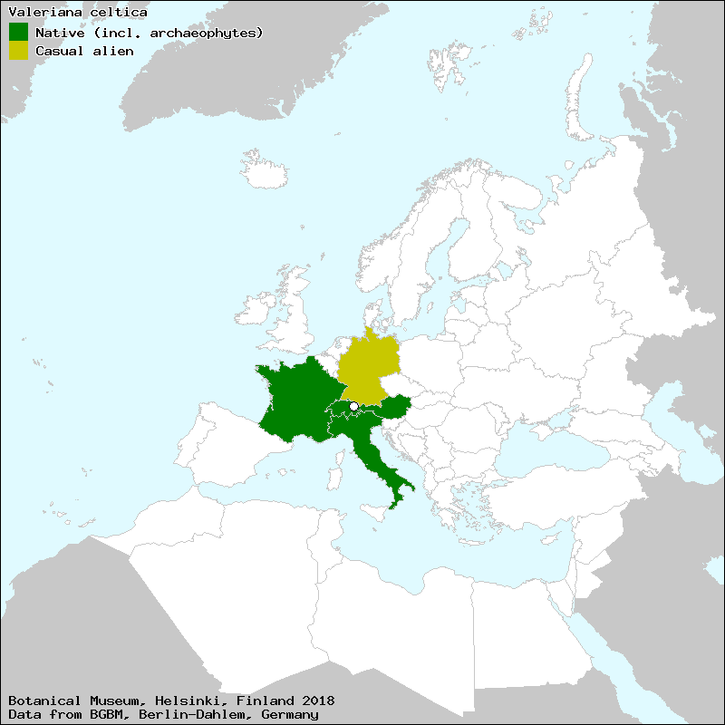 Raab-Straube, E. von & Henning, T. (2017+): Valeriana (excl. V. officinalis aggr.). – In: Euro+Med Plantbase - the information resource for Euro-Mediterranean plant diversity. This work is licensed under a Creative Commons Attribution-ShareAlike 3.0 Unported license (CC-By-SA-3.0 Unported).