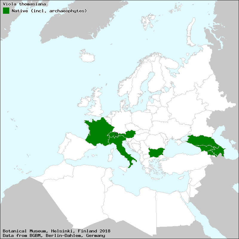 Raab-Straube, E. von & Henning, T.(2018): Violaceae. – In: Euro+Med Plantbase - the information resource for Euro-Mediterranean plant diversity. This work is licensed under a Creative Commons Attribution-ShareAlike 3.0 Unported license (CC-By-SA-3.0 Unported).