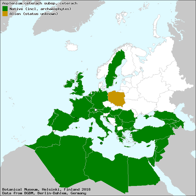 Cétérac officinal (French), Cétérac (French), Cétérach officinal (French), Cétérach (French), Doradille (French), adoradilla (Spanish, Castillian), Asplénie cétérac (French), Asplénie cétérach (French), Asplénium cétérac (French), Asplénium cétérach (French), auladella (Catalan), auradella (Catalan), aurellina (Catalan), capilera dorada (Spanish, Castillian), cerveriña (Galician), ceterac (Catalan), Cétérac des officines (French), ceterach (Catalan), ceterach (Spanish, Castillian), Cétérach des officines (French), ceteraque (Galician), ceteraque (Portuguese), charranguilla (Spanish, Castillian), colondrillo (Asturian), culantrillo (Spanish, Castillian), dauradella (Catalan), dauradella (Majorcan), dauradella (Valencian), dauradelle (Catalan), dauradeta (Catalan), doiradinha (Galician), doiradinha (Portuguese), doiradinha bastarda (Portuguese), doiradinha-das-boticas (Portuguese), dorá (Valencian), dorada (Catalan), dorada (Spanish, Castillian), doradella (Catalan), doradella (Valencian), doradeta (High Aragonese), doradilla (Aragonese), doradilla (Spanish, Castillian), doradillo (Spanish, Castillian), doradinha (Galician), doradinha (Portuguese), doraella (Catalan), doraella (Valencian), dorailla (Spanish, Castillian), doraílla (Spanish, Castillian), dorodilla (Valencian), douradella (Majorcan), douradiña (Galician), douradinha (Galician), douradinha (Portuguese), douradinha bastarda (Portuguese), duradella (Catalan), erva doirada (Galician), erva doirada (Portuguese), erva-doirada (Galician), erva-doirada (Portuguese), escolopendra verdadera (Galician), escolopendra verdadera (Portuguese), escolopendria (Spanish, Castillian), esmermasangre (Aragonese), felces (Aragonese), fenta das pedras (Galician), fenta pequeniña (Galician), fenta pequeniña (Portuguese), fento de ouro (Galician), fento de ouro (Portuguese), fento pequeniño (Galician), fento pequeñino (Galician), fento pequeniño (Portuguese), fento pequeñino (Portuguese), h.elecha (Asturian), h.elechos (Asturian), herba daurada (Catalan), herba daurada (Valencian), herba de la febre (Catalan), herba de la sang (Catalan), herba de la sang (Valencian), herba de ouro (Galician), herba de ouro (Portuguese), herba de paret (Catalan), herba dorá (Valencian), herba dorada (Catalan), herba doradilla (Valencian), herba melsera (Valencian), herba ordilla (Valencian), herba platera (Valencian), herba platereta (Valencian), herba queixalera (Catalan), Herbe dorée (French), hierba de la tos (Spanish, Castillian), hierba del oro (Spanish, Castillian), hierba dorada (Spanish, Castillian), hierba dorailla (Spanish, Castillian), hierba lancera (Aragonese), hierba plateada (Spanish, Castillian), ierba lanzera (Aragonese), jéus (Aragonese), kulandrin ori (Euskera), la herba doradilla (Valencian), ljekoviti zlatinjak (Croat), melfera (Valencian), melsera (Catalan), mermasangre (Aragonese), mermasangre (High Aragonese), morella (Catalan), neuradella (Catalan), ordilla (Valencian), oredilla (Valencian), orma (Euskera), orma-belarra (Euskera), ormabelarra (Spanish, Castillian), orodilla (Valencian), patetes de Nostre Senyor (Valencian), pulipodio (Spanish, Castillian), pulmonaria dorada (Spanish, Castillian), rompepiedra (Spanish, Castillian), sardineta (Aragonese), sardineta (High Aragonese), sardineta (Spanish, Castillian), té (Spanish, Castillian), té bravío (Spanish, Castillian), uradella (Catalan), uradilla (Valencian), uredella (Catalan), vascitxarrangilla (Euskera), xardin-belar hori (Euskera), xardin-belar horia (Euskera), xardin-belarr horin (Euskera), yerba dorada (Spanish, Castillian), yerba lancera (High Aragonese), zanca morenilla (Spanish, Castillian)[Credits] |
