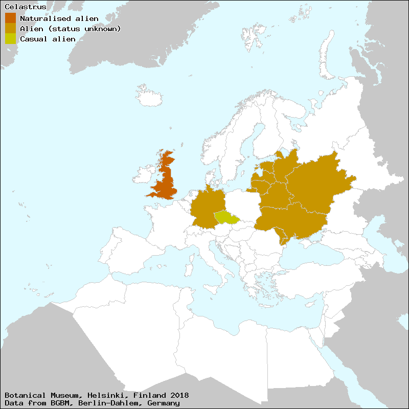 Raab-Straube, E. von (2018): Celastraceae. – In: Euro+Med Plantbase - the information resource for Euro-Mediterranean plant diversity. This work is licensed under a Creative Commons Attribution-ShareAlike 3.0 Unported license (CC-By-SA-3.0 Unported).