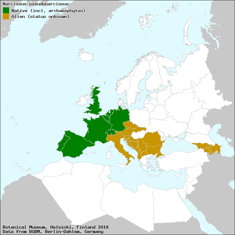 abrótea (Portuguese), anbulo gaixto (Euskera), anbulu gaizto (Euskera), azucena silvestre (Spanish, Castillian), campaneta de puerto (Aragonese), campaneta de puerto (High Aragonese), campanilla tragona (Spanish, Castillian), campanillas (Spanish, Castillian), campanillas grandes (Spanish, Castillian), capillejas (Spanish, Castillian), capilotes (Spanish, Castillian), cebolla de lechuguilla (Spanish, Castillian), cebolla de los prados (Spanish, Castillian), cebolla de oro (Spanish, Castillian), chuchufraca (Euskera), chuchupraka (Euskera), cuquiella (Asturian), falso narciso (Spanish, Castillian), falso-narciso (Spanish, Castillian), fllo de lis amarilla (High Aragonese), flor de ángel (Spanish, Castillian), flor de San José (Galician), flor de San Xosé (Galician), grillandas (Spanish, Castillian), herba namoradeira (Galician), herba-nemoradeira (Galician), herba-nemoradeira (Portuguese), junquilho (Portuguese), kanpanillas (Euskera), lilipa arrunt (Euskera), lirón (Spanish, Castillian), lirones (Galician), lirones (Spanish, Castillian), manteigueras (Spanish, Castillian), maya (Spanish, Castillian), narcis (Majorcan), narcis de montanya (Catalan), narcís de muntanya (Catalan), narciso (Aragonese), narciso (High Aragonese), narciso (Spanish, Castillian), narciso bastardo (Portuguese), narciso de campanilla (Spanish, Castillian), narciso de lechuguilla (Spanish, Castillian), narciso de los prados (Spanish, Castillian), narciso de prado (Aragonese), narciso de prado (High Aragonese), narciso sevillano (Spanish, Castillian), narciso trombeta (Portuguese), narciso trompón (Galician), narciso trompón (Spanish, Castillian), narciso-bravo (Portuguese), narciso-trombeta (Galician), narciso-trombeta (Portuguese), narziso (Aragonese), perolez (High Aragonese), petaderas (High Aragonese), tragapán (Spanish, Castillian), tragón (Spanish, Castillian), trombonio (Portuguese), trompón (Spanish, Castillian), txutxupraka (Euskera), zumamache (Euskera)[Credits] |