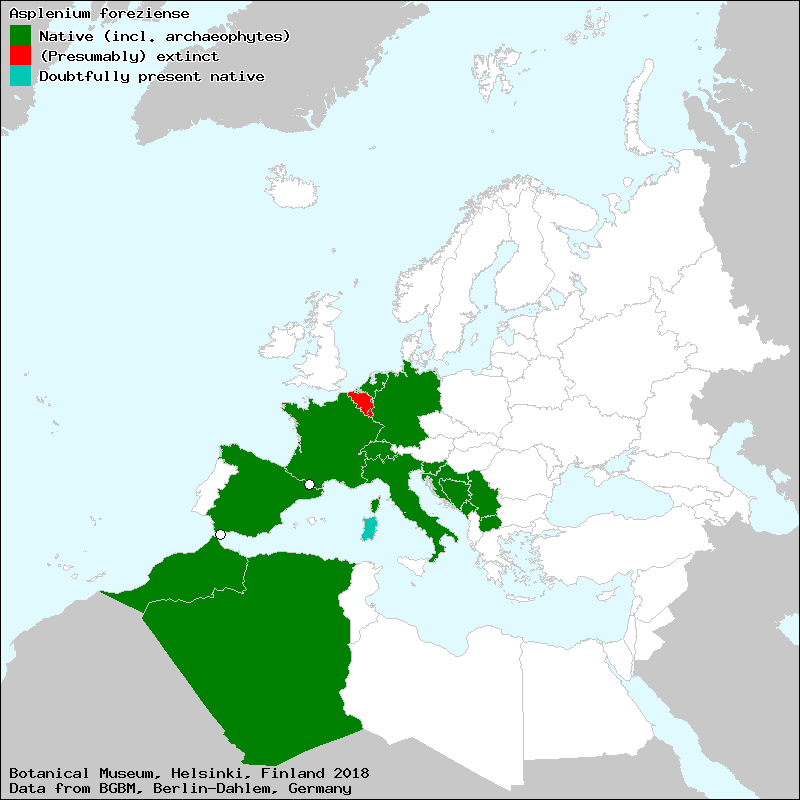 Asplénium du Forez (French), Doradille du Forez (French), Asplénie du Forez (French), Asplenio foresiaco (Italian), Asplénium du Forez (French), Doradille du Forez (French), Foreser-Streifenfarn (German), Forez-streepvaren (Dutch), Französischer Streifenfarn (German)[Credits] |