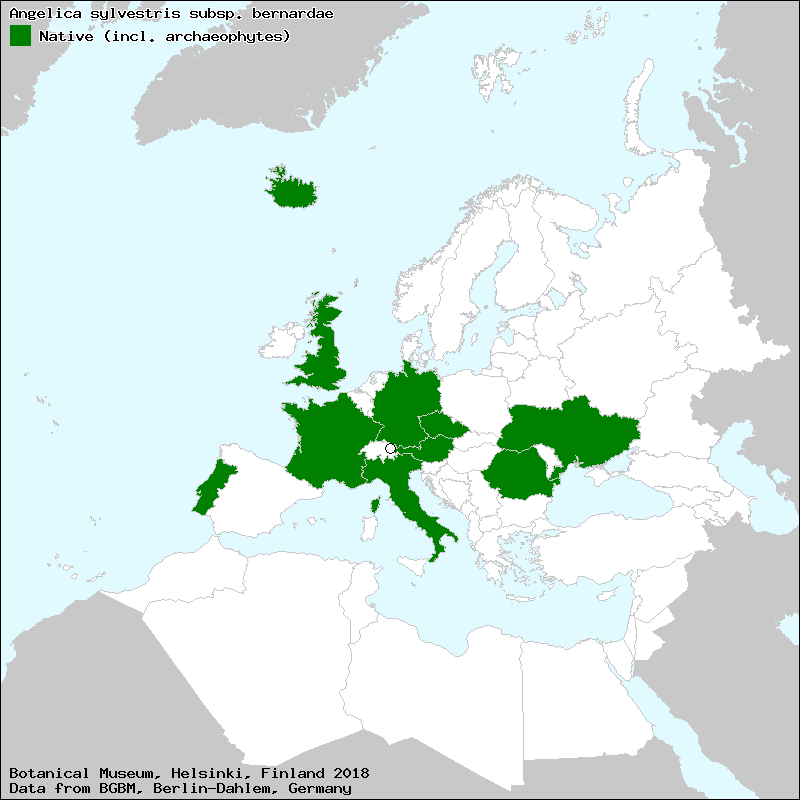 "Angelica sylvestris subsp. montana (Brot.) Nyman" sec. Conti, F., Abbate, G., Alessandrini, A., Blasi, C. - An annotated checklist of the Italian vascular flora. Fratelli Palombi Roma 2005. |