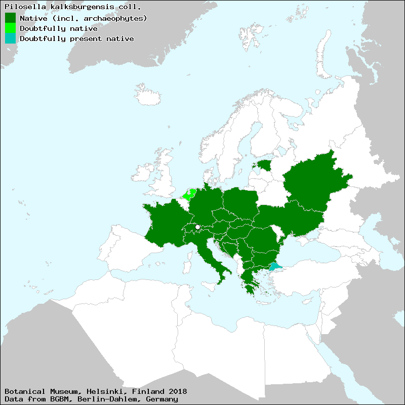 Bräutigam, S. & Greuter, W. (2007-2009): Pilosella. – In: Greuter, W. & Raab-Straube, E. von (ed.): Compositae. Euro+Med Plantbase - the information resource for Euro-Mediterranean plant diversity. This work is licensed under a Creative Commons Attribution-ShareAlike 3.0 Unported license (CC-By-SA-3.0 Unported).