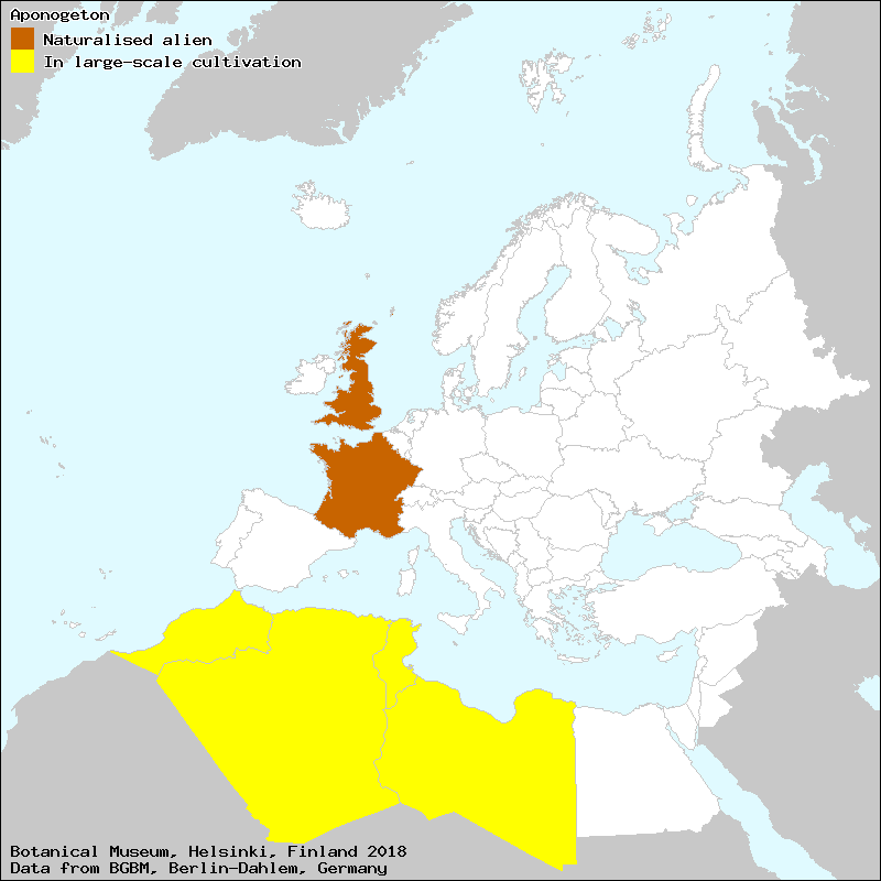 Uotila, P. (2009): Aponogetaceae. – In: Euro+Med Plantbase - the information resource for Euro-Mediterranean plant diversity. This work is licensed under a Creative Commons Attribution-ShareAlike 3.0 Unported license (CC-By-SA-3.0 Unported).