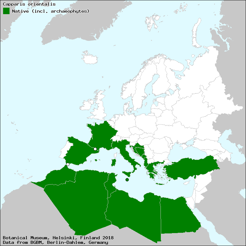 Uotila, P. (2011): Capparaceae. – In: Euro+Med Plantbase - the information resource for Euro-Mediterranean plant diversity. This work is licensed under a Creative Commons Attribution-ShareAlike 3.0 Unported license (CC-By-SA-3.0 Unported).
