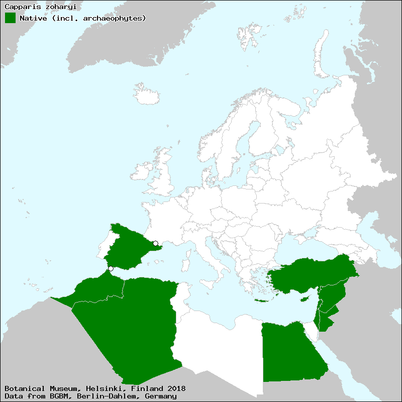 "Capparis spinosa" sec. Danin, A. - Distribution atlas of plants in the Flora palaestina area Jerusalem 2004. |