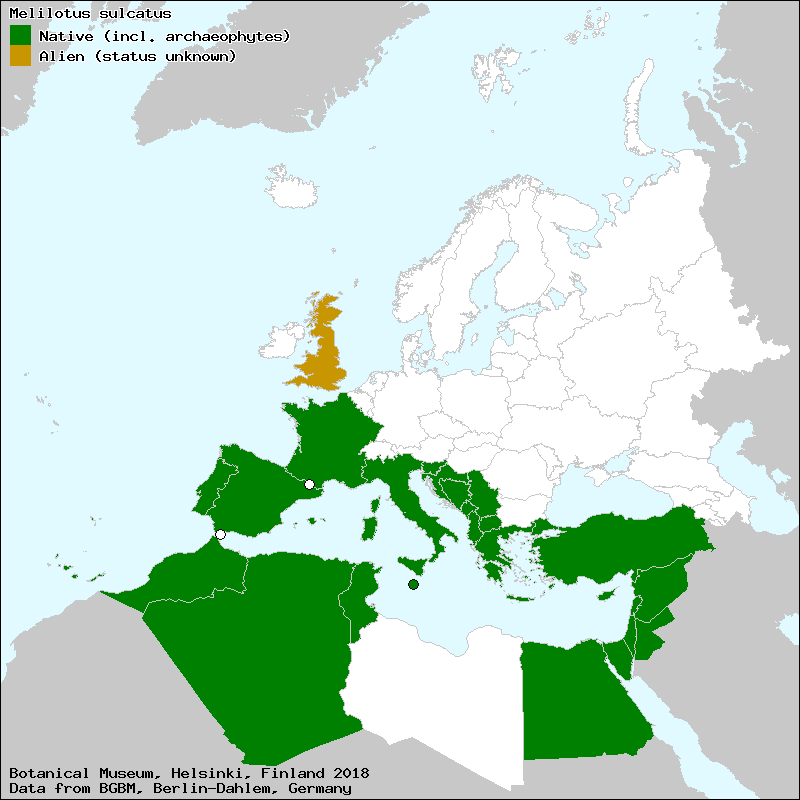 almegó solcat (Catalan), anafe (Portuguese), anafe-ordinário (Portuguese), anafe-sulcado (Portuguese), corona de olor (Spanish, Castillian), fenarola (Catalan), Furrowed Melilot (English), Gefurchter Honigklee (German), Mediterranean Melilot (English), melilot solcat (Catalan), trebo (Spanish, Castillian), trébol caballar (Spanish, Castillian), trebol camellí (Majorcan), trebol d´olor (Majorcan), trebol de ramellets (Majorcan), trebol famella (Majorcan), trébol real (Spanish, Castillian), trevo-de-seara (Portuguese), trèvol de ramellet (Majorcan), trèvol de ramellets (Catalan), trèvol de ramellets (Majorcan)[Credits] |