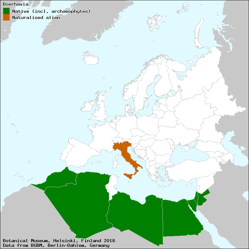 Source: Uotila, P. (2011): Nyctaginaceae. – In: Euro+Med Plantbase - the information resource for Euro-Mediterranean plant diversity.