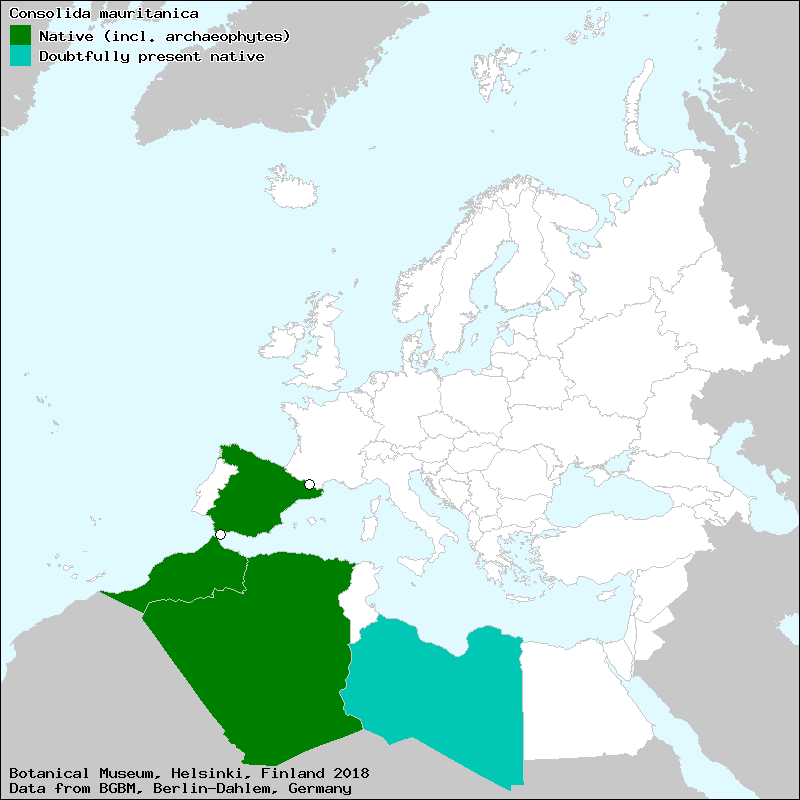 "Delphinium loscosii" sec. JAHANDIEZ, E. & R. MAIRE - Catalogue des plantes du Maroc. Minerva, Lechevalier, Alger, 1931-1934. 1: [I]-XL, [1]-[160]. 1931; 2: [vi], [161]-[558]. 1932; 3: [LI]-LVII, [i], [559]-[914]. 1934; [4: (= suppl.) - 16]. |