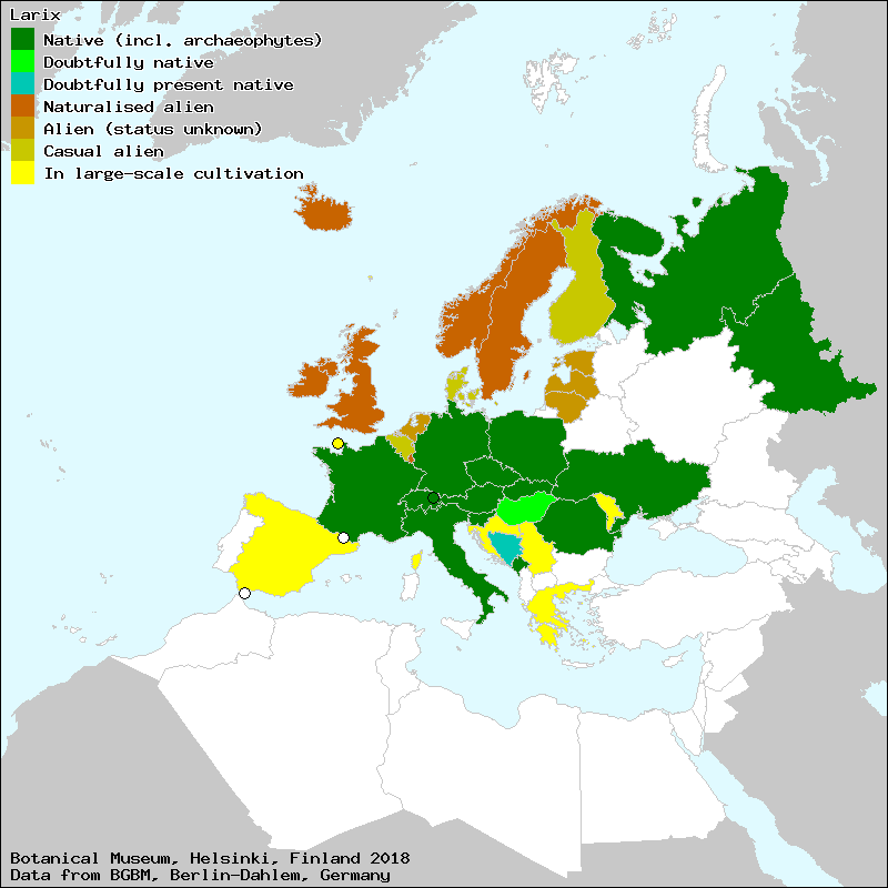 Raab-Straube, E. von (2014): Gymnospermae. – In: Euro+Med Plantbase - the information resource for Euro-Mediterranean plant diversity. This work is licensed under a Creative Commons Attribution-ShareAlike 3.0 Unported license (CC-By-SA-3.0 Unported).