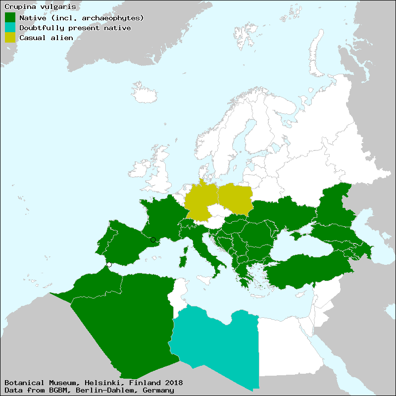 Crupina comune (Italian), Crupine commune (French), Crupine vulgaire (French), Golasti nosan (Croat), Krupinë e rëndomte (Albanian), Krupinka obyčajná (Slovak), Navadna krupina (Slovene), Schlupfsame (German), Ади крупина (Azerbaijan), Крупина звичайна (Ukraine), Крупина обыкновенная (Russian), Крупинэ обишнуитэ (Moldovian), Обикновена крупина (Bulgarian), Տերեփան սովորական (Armenian), cabezuela (Spanish, Castillian), cabezuela cana (Spanish, Castillian), cana (Spanish, Castillian), crupina (Catalan), crupina (Spanish, Castillian), Crupine vulgaire (French)[Credits] |