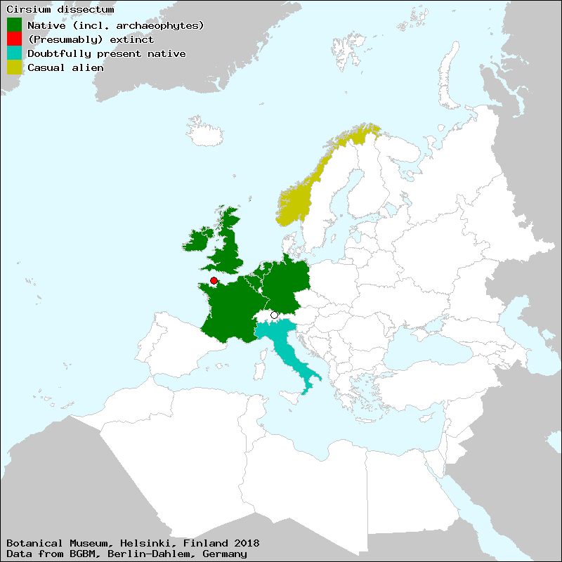Ängstistel (Swedish), Cirse anglais (French), Cirse d’Angleterre (French), Cirse découpé (French), Englische Kratzdistel (German), Meadow Thistle (English), Spaanse ruiter (Dutch), Cirse anglais (French), Cirse des prairies (French)[Credits] |