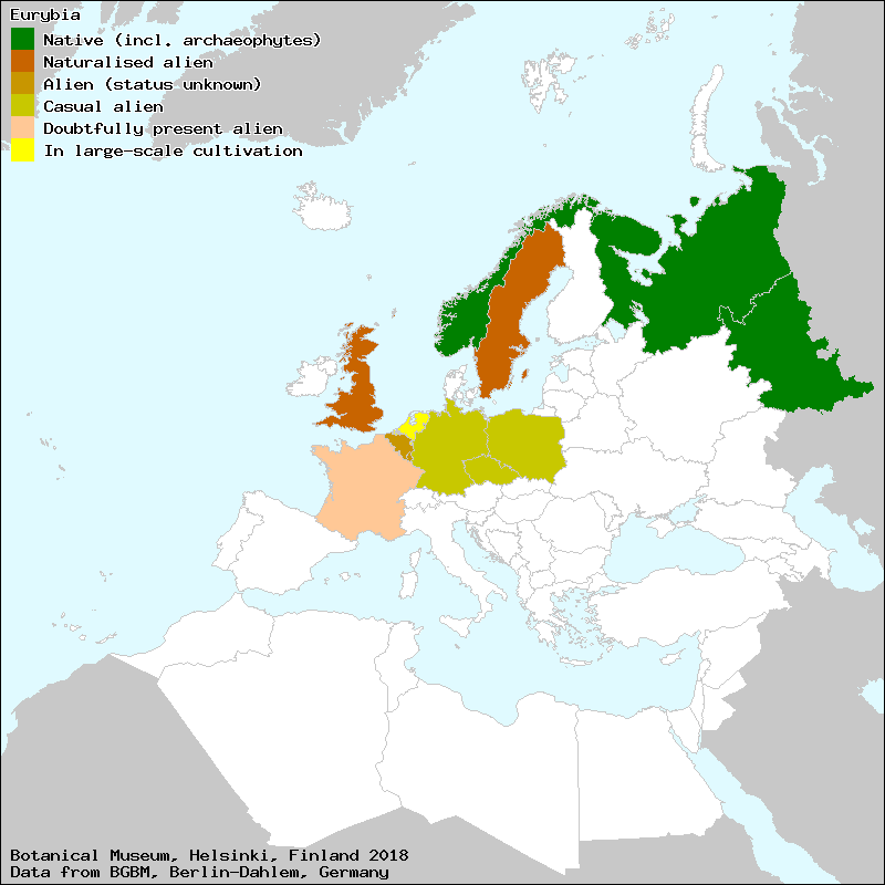 Greuter, W. (2006+): Compositae (pro parte majore). – In: Greuter, W. & Raab-Straube, E. von (ed.): Compositae. Euro+Med Plantbase - the information resource for Euro-Mediterranean plant diversity. This work is licensed under a Creative Commons Attribution-ShareAlike 3.0 Unported license (CC-By-SA-3.0 Unported).