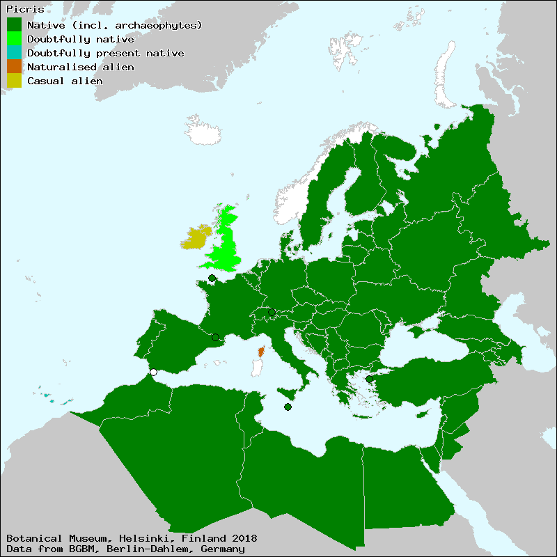 Aspraggine (Italian), Bitterich (German), Bitterkraut (German), Cifur (Albanian), Goryczel (Polish), Hořčík (Czech), Kartylis (Lithuanian), Mõrkjas (Estonian), Oxtongue (English), Picride (French), Rūgtpiene (Latvian), Srävfibblor (Swedish), Амэруцэ (Moldovian), Горичивче (Bulgarian), Горлюха (Russian), Горчак (Russian), Снахица (Bulgarian), Գինեղեգ (Armenian), Դառնիճ (Armenian), מררית (Israel (Hebrew)), מְרָרִית (Israel (Hebrew)), مُرَّيْر (Arabic)[Credits] |