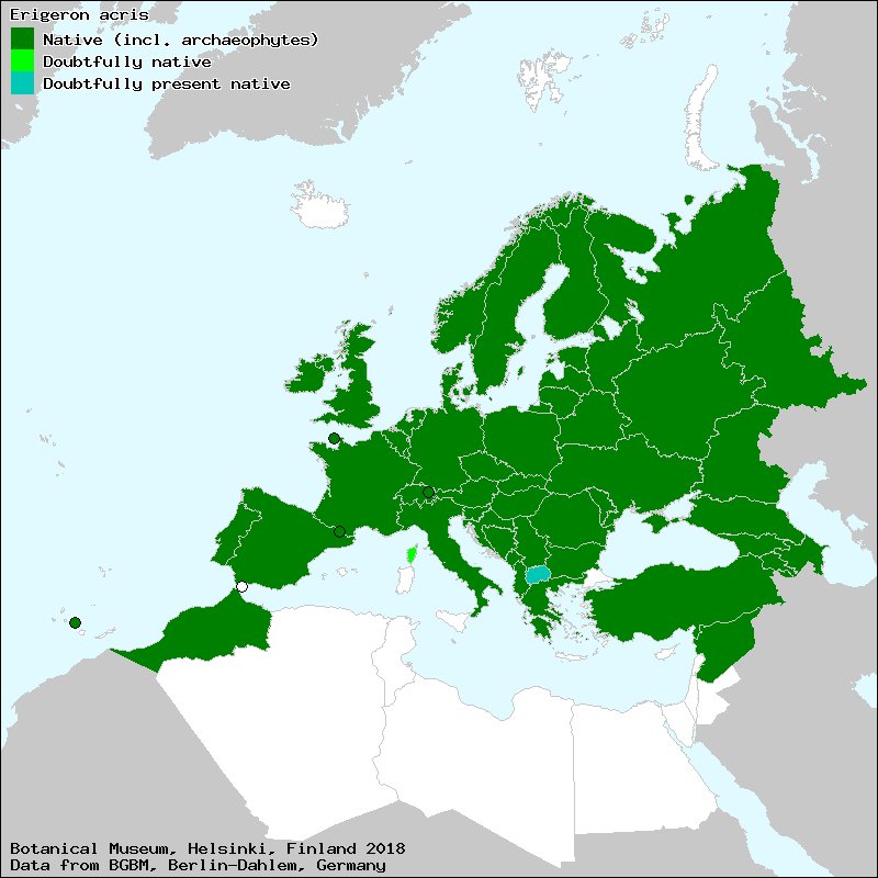 Asais jānītis (Latvian), Bakkestjerna (Norwegian), Bitter Bakkestjerna (Danish), Blue Fleabane (English), Cespica acre (Italian), Céspica acre (Italian), Érigéron âcre (French), Erigeron i thartë (Albanian), Gråbinka (Swedish), Jaani-õnnehein (Estonian), Kamenjarska hudoljetnica (Croat), Karvaskallioinen (Finnish), Ostra suholetnica (Slovene), Przymiotno ostre (Polish), Scharfes Berufkraut (German), Scherpe fijnstraal (Dutch), Turan ostrý (Czech), Turica ostrá (Slovak), Vergerette âcre (French), Бэтрыниш акру (Moldovian), Злинка гостра (Ukraine), Мелколепестник едкий (Russian), Явролистна злолетица (Bulgarian), Գարնանաթարամ կծու (Armenian), Érigeron âcre (French)[Credits] |