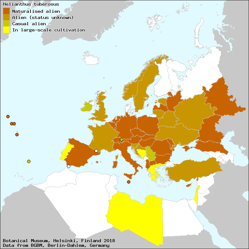 Aardpeer (Dutch), Artichaut de Jérusalem (French), Artiċiok (Maltese), Erdbirne (German), Girasole del Canada (Italian), Gomoljasta sunčanica (Croat), Gomoljasti suncokret (Croat), Gumbinė saulėgrąža (Lithuanian), Hélianthe tubéreux (French), Jerusalem Artichoke (English), Jordärtskocka (Swedish), Jordskok (Danish), Jordskokk (Norwegian), Knollen-Sonnenblume (German), Maa-artisokka (Finnish), Maapirn (Estonian), Mollë e dheut (Albanian), Morski krumpir (Croat), Nhod (Croat), Repa arapska (Croat), Slnečnica hľuznatá (Slovak), Słonecznik bulwiasty (Polish), Slunečnice topinambur (Czech), Tartufo di Canna (Italian), Topinambas (Lithuanian), Topinambour (French), Topinambur (Estonian), Topinambur (German), Topinambur (Italian), Topinambur (Slovene), Topinambūrs (Latvian), Trtor (Croat), Земляная груша (Russian), Јерармуду ҝүнәбахан (Azerbaijan), Напь порчешть (Moldovian), Подсолнечник клубненосный (Russian), Соняшник бульбистий (Ukraine), Топинамбур (Azerbaijan), Топинамбур (Russian), aguaturma (Aragonese), aguaturma (Spanish, Castillian), Artichaut du Canada (French), bataca (Spanish, Castillian), bataca de caña (Spanish, Castillian), batata de caña (Spanish, Castillian), batata tupinamba (Portuguese), batatas vermelhas (Portuguese), batata-tupinamba (Portuguese), batattas do Brasil (Portuguese), batattas topinamba (Portuguese), canarias (Aragonese), canarias (High Aragonese), canarios (Aragonese), Cartofle (French), castaña de tierra (Spanish, Castillian), chufera (Aragonese), chufera (High Aragonese), comí (Catalan), frantses patata (Euskera), girasol tuberoso (Portuguese), girassol batateiro (Portuguese), girassol-batateiro (Portuguese), gyrasol batateiro (Portuguese), Hélianthe tubéreux (French), herba pudent (Catalan), Laška repa (Slovene), macuca (Spanish, Castillian), marenquera (Spanish, Castillian), margarita grande (Spanish, Castillian), marquezom (Portuguese), nyama (Catalan), nyamara (Catalan), nyàmera (Catalan), nyàmera (Portuguese), nyàmeres (Catalan), nyapes (Catalan), papa (Spanish, Castillian), pataca (High Aragonese), pataca (Spanish, Castillian), pataca de caña (Spanish, Castillian), pataca de pala (Spanish, Castillian), patacas (Aragonese), patacas (Spanish, Castillian), patacas de palo (Valencian), pataka (Euskera), pataquera (Aragonese), pataquera (High Aragonese), patata (Aragonese), patata (Spanish, Castillian), patata de caña (Spanish, Castillian), patata de canya (Catalan), patata de canya (Valencian), patata de pala (Valencian), patata de palo (Spanish, Castillian), patata de tierra (Spanish, Castillian), patata petorrera (Catalan), patata tumba (Spanish, Castillian), patata turma (Aragonese), patata turma (High Aragonese), patata turma (Spanish, Castillian), patatas de caña (Spanish, Castillian), Patate de Virginie (French), peras da terra (Portuguese), peras de tierra (Spanish, Castillian), petacas (Spanish, Castillian), Poire de terre (French), ramons (Catalan), setembres (Catalan), topinambo (Spanish, Castillian), topinambor (Portuguese), Topinambur (Polish), topinamburo (Euskera), topiñamorr (Euskera), topinanbu (Euskera), trunfa canaria (Aragonese), trunfa canaria (High Aragonese), tubera-topinambores (Portuguese), tupinambo (Portuguese), tupinambo (Spanish, Castillian), tupinambur (Majorcan), tupinanbo (Spanish, Castillian), turma de agua (Spanish, Castillian)[Credits] |