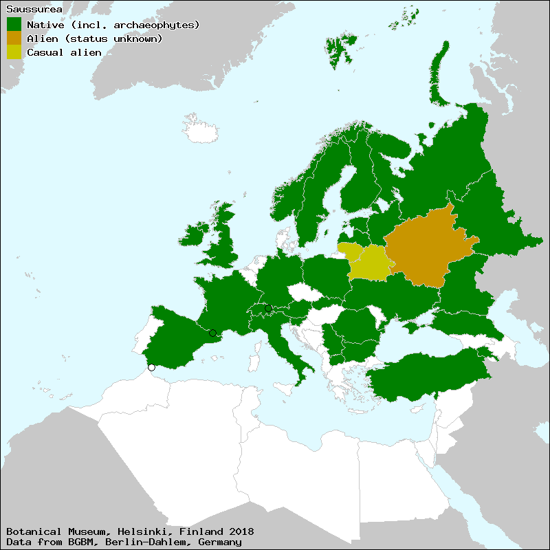 Alpenscharte (German), Fjällskäror (Swedish), Rūgtlape (Latvian), Saussurea (Italian), Saussurea (Polish), Saussurée (French), Soojumikas (Estonian), Горькуша (Russian), Саусуреа (Bulgarian), Соссюрея (Russian), Сосюрея (Ukraine), Սոսուրեա (Armenian), Гiркий корiнь (Ukraine)[Credits] |