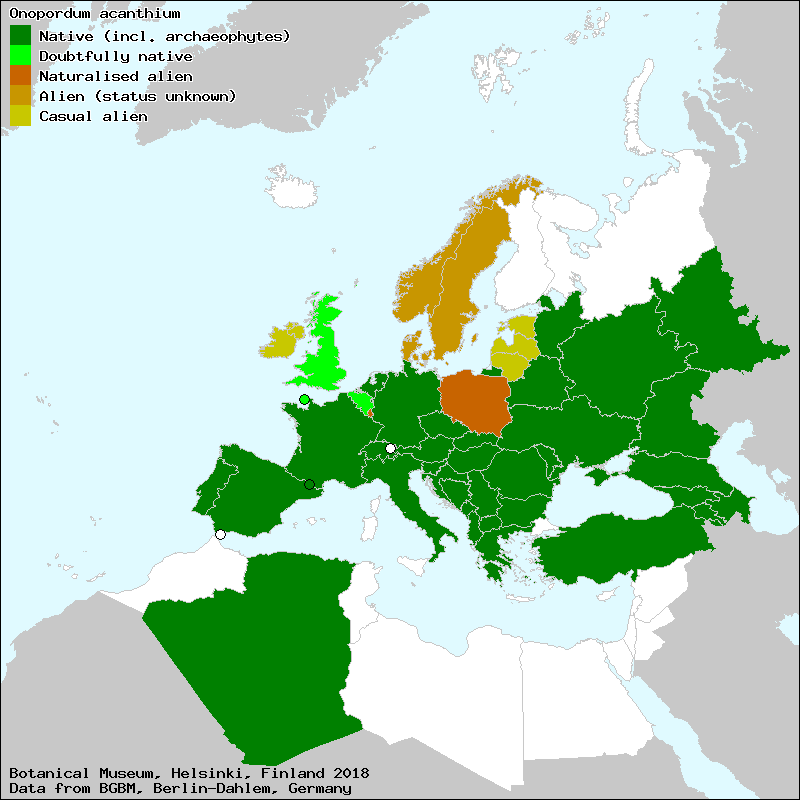 Æselfoder (Danish), Asais baltdadzis (Latvian), Builak (Croat), Chardon aux ânes (French), Cotton Thistle (English), Dygliuotoji kardažolė (Lithuanian), Eselsdistel (German), Eseltistel (Norwegian), Gewöhnliche Eselsdistel (German), Kruunuohdake (Finnish), Navadna kozjica (Slovene), Obična bodljača (Croat), Obični kravačac (Croat), Okakruunuohdake (Finnish), Onoporde acanthe (French), Onopordo tomentoso (Italian), Onopordon à feuilles d’Acanthe (French), Onopordon fausse Acanthe (French), Ostropes obyčajný (Slovak), Ostropes trubil (Czech), Popłoch pospolity (Polish), Rrshyll (Albanian), Sikavica bela (Croat), Strgljivac planinski (Croat), Terav kroonohakas (Estonian), Trnak (Croat), Trnovka (Croat), Ulltistel (Swedish), Vunasti kravačac (Croat), Wegdistel (Dutch), Xhixhëll dashtër (Albanian), Ади чакгал гангалы (Azerbaijan), Жълтеникав онопордум (Bulgarian), Скай обишнуит (Moldovian), Татарник звичайний (Ukraine), Татарник колючий (Russian), Կառ փշոտ (Armenian), acanos (Spanish, Castillian), acanthio vulgar (Portuguese), acanto bastardo (Portuguese), acanto bastardo (Spanish, Castillian), acanto salvaje armado de espinas (Spanish, Castillian), acanto-bastardo (Portuguese), alcachofa borriquera (Spanish, Castillian), alcachofa ruda (Spanish, Castillian), alcachofa salvaje (Spanish, Castillian), alcachofas borriqueñas (Spanish, Castillian), alcachofas silvestres (Spanish, Castillian), anacarnina (Spanish, Castillian), anasarina (Spanish, Castillian), ansarina (Spanish, Castillian), astalarr (Euskera), atoba (Spanish, Castillian), bufasa (Catalan), bufassa (Catalan), bufassa (Valencian), card d’ase (Valencian), cardalloba (Catalan), cardiga (Catalan), cardigàs (Catalan), cardillo (Spanish, Castillian), cardo (Galician), cardo (Spanish, Castillian), cardo argentino de Vigier (Portuguese), cardo asnil (Galician), cardo borriqueño (Spanish, Castillian), cardo borriquero (Spanish, Castillian), cardo burral (Spanish, Castillian), cardo burreño (Spanish, Castillian), cardo burrero (Spanish, Castillian), cardo burricón (Spanish, Castillian), cardo burriquero (Spanish, Castillian), cardo de burro (Spanish, Castillian), cardo ruso (Spanish, Castillian), cardo silvestre (Portuguese), cardo timonero (Spanish, Castillian), cardo yesquero (Spanish, Castillian), cardot gros (Catalan), cardo-toba (Spanish, Castillian), cardots (Catalan), carnera borda (Catalan), carnèra borda (Catalan), carnina (Spanish, Castillian), cart (Catalan), Chardon d’Écosse (French), cialora (Euskera), encinas de Tierra de Campos (Spanish, Castillian), espina blanca (Catalan), espina blanca (Spanish, Castillian), lastarroa (Euskera), manta de Judas (Spanish, Castillian), manto de judas (Spanish, Castillian), Onoporde à feuilles d’Acanthe (French), Onopordon Acanthe (French), pet d’ase (Catalan), pet d´anech (Catalan), pet d´ase (Catalan), ruso (Spanish, Castillian), Tistelborre (Swedish), toba (Aragonese), toba (Galician), toba (Spanish, Castillian), tobas (Spanish, Castillian), tobes (Catalan), yesquero (Spanish, Castillian)[Credits] |