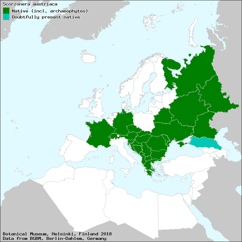 Hadí mord rakouský (Czech), Österreichische Schwarzwurzel (German), Scorsonère d’Autriche (French), Scorzonera barbuta (Italian), Scorzonère d’Autriche (French), Skorzonerë austriake (Albanian), Австрийски кокеш (Bulgarian), Скорцонерэ аустриякэ (Moldovian), Scorzonère d’Autriche (French)[Credits] |