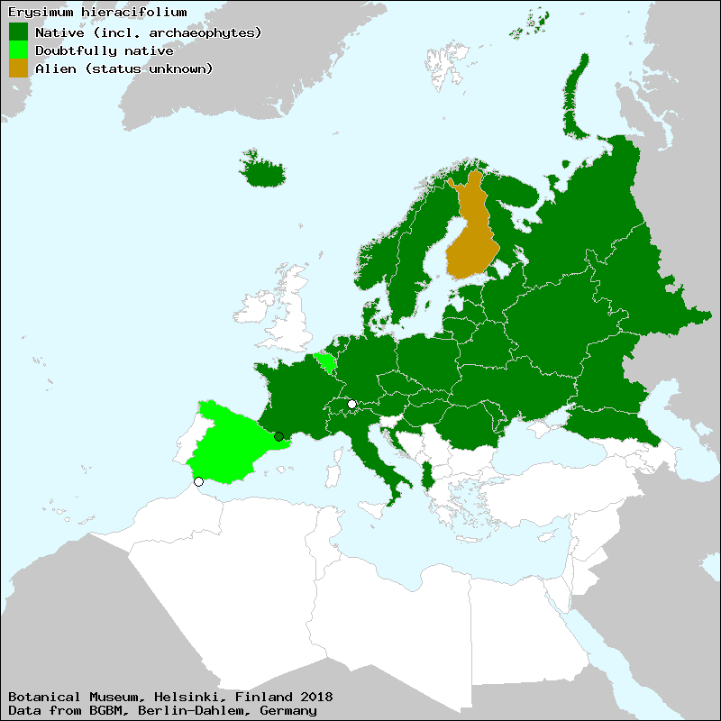 Mauraglapu pērkonene (Latvian), Sirge harakalatv (Estonian), Stačiavaisis tvertikas (Lithuanian), Желтушник ястребинколистный (Russian), Жовтушник нечуйвiтролистий (Ukraine), Миша боянка (Bulgarian)[Credits] |