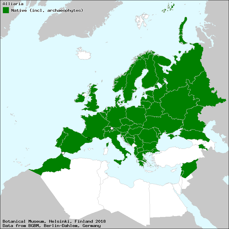 Česnakūnė (Lithuanian), Ķiplocene (Latvian), Kõdrik (Estonian), Sarιmsaqotu (Azerbaijan), Αλλιαρία (Greek), кiнський часник (Ukraine), Конский чеснок (Russian), Лъжичина (Bulgarian), Устуроицэ (Moldovian), Чесночник (Russian), Чесночница (Russian)[Credits] |