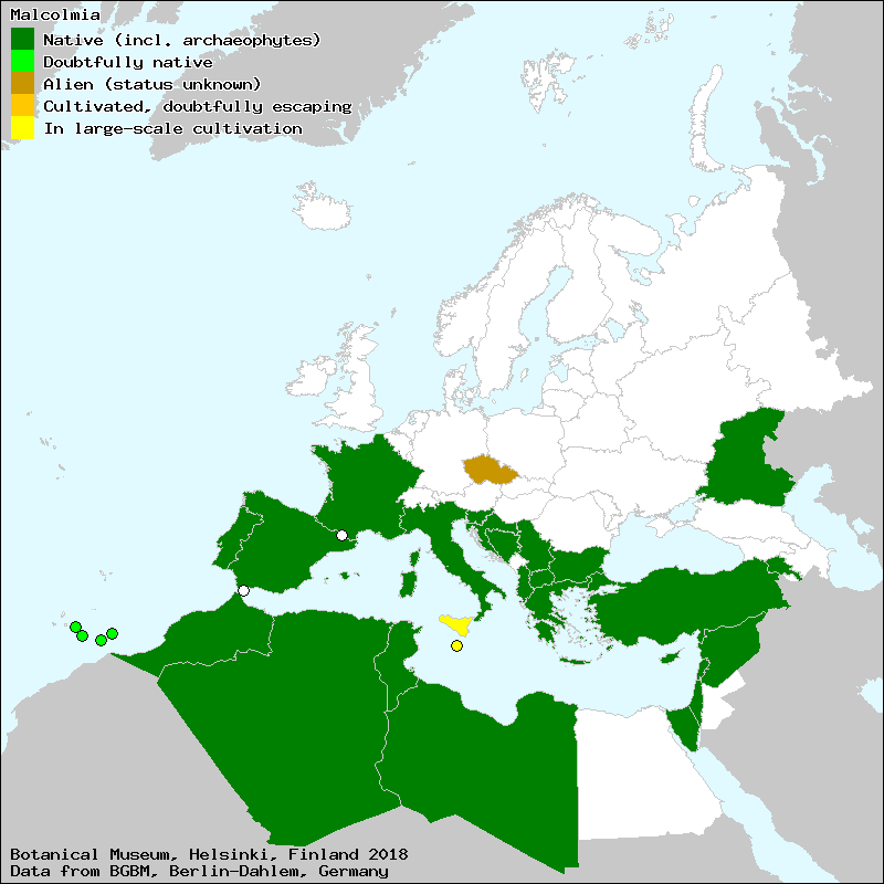 Malkolmiya (Azerbaijan), Малколмия (Bulgarian), Малькольмия (Russian), Стригозела (Ukraine), Стригозелла (Russian)[Credits] |