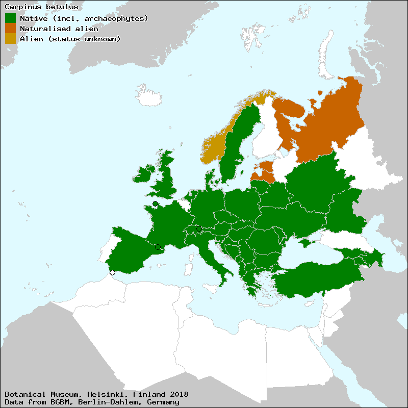 abedulillo (Spanish, Castillian), bejigar (Euskera), betula bastarda (Portuguese), carpe (Portuguese), carpe (Spanish, Castillian), càrpinus (Catalan), cárpinus (Portuguese), charmilla (Spanish, Castillian), gatell (Catalan), haya blanca (Spanish, Castillian), haya de espalleres (Spanish, Castillian), hojaranzo (Spanish, Castillian), ojaranzo (Spanish, Castillian), olmedilla (Spanish, Castillian), pago-lizarra (Euskera), xarma (Euskera), xarma arrunt (Euskera), xarma-arrunta (Euskera), zigia (Catalan), Αγριοτσουκνίδα (Greek), Γαύρος (Greek), Γραβί (Greek), Γράβος (Greek), Σκός (Greek)[Credits] |