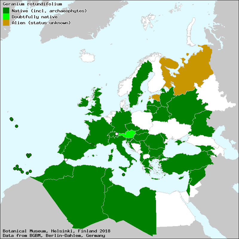 alfileres (Spanish, Castillian), bico de grou de folhas redondas (Portuguese), gerani (Majorcan), geranio (Spanish, Castillian), geranio de hoja redonda (Spanish, Castillian), geranio segundo (Spanish, Castillian), geranio silvestre (Spanish, Castillian), pampilho (Portuguese), pico de cigüeña (Spanish, Castillian), pico de cigüeña con hojas de malva (Spanish, Castillian), pico de cigüeña segundo (Spanish, Castillian), rellotges (Majorcan), suansana (Majorcan), suasana (Catalan), suassana (Catalan), suassana (Majorcan), suassana rotundifòlia (Catalan)[Credits] |