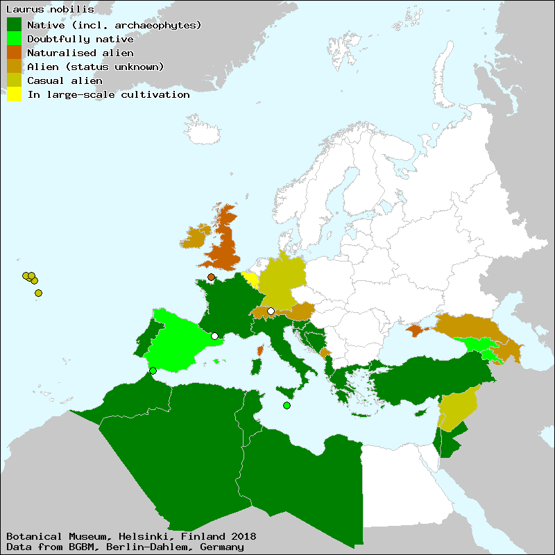alloriu (Asturian), alloru (Asturian), árbol de Apolo (Spanish, Castillian), aurel (Asturian), aurel (Spanish, Castillian), bacalia (Catalan), baguer (Catalan), bagues (Catalan), chorín (Asturian), choriu (Spanish, Castillian), ereinontzarr (Euskera), ereinotz (Euskera), ereinotza (Euskera), ereinuntza (Euskera), ereiñuntza (Euskera), ereño (Euskera), ereñotz (Euskera), erenotza (Euskera), ereñotza (Euskera), ereñuntza (Euskera), eriñotz (Euskera), eriontz (Euskera), erramo (Euskera), erramu (Euskera), erramua (Euskera), erreñotza (Euskera), gamallo (Galician), hojes de laurel (Asturian), horbaga (Asturian), isoureiro (Asturian), lauredo (Spanish, Castillian), laureiro (Asturian), laureiro (Galician), laurel (Asturian), laurel (Galician), laurel (Spanish, Castillian), laurel común (Spanish, Castillian), laurel de Apolo (Spanish, Castillian), laurel de Dafne (Spanish, Castillian), laurel del Mediterráneo (Spanish, Castillian), laurel hembra (Spanish, Castillian), laurel macho (Spanish, Castillian), laurel noble (Spanish, Castillian), laurel real (Spanish, Castillian), laurel salsero (Aragonese), laurelal (Spanish, Castillian), laurelero (Aragonese), laurelero (High Aragonese), lauro (Spanish, Castillian), llaurel (Catalan), llaurer (Catalan), llaurer (Spanish, Castillian), llaureru (Asturian), llor (Catalan), llorea (Spanish, Castillian), lloreda (Asturian), llorel (Spanish, Castillian), llorell (Catalan), lloreo (Asturian), llóreo (Asturian), lloreo (Spanish, Castillian), lloréolo (Asturian), lloreolo (Spanish, Castillian), llorer (Catalan), llorer (Majorcan), llorer (Valencian), llorer noble (Catalan), lloreu (Asturian), lloréu (Asturian), lloureiro (Asturian), loireiro (Galician), loireiro ordinario (Portuguese), loiro (Galician), loiro (Portuguese), loreda (Spanish, Castillian), loredo (Spanish, Castillian), lorel (Spanish, Castillian), loreto (Spanish, Castillian), loureiro (Galician), loureiro (Portuguese), loureiro da baieira (Galician), loureiro femia (Galician), loureiro macho (Galician), loureiro palmo (Galician), loureiro vulgar (Portuguese), loureiro-comum (Portuguese), loureiro-de-Apolo (Portuguese), loureiro-dos-poetas (Portuguese), loureiro-vulgar (Portuguese), lourero (Galician), louro (Galician), louro (Portuguese), olives de llorer (Catalan), orel (Spanish, Castillian), rameira (Asturian), sempre verde (Galician), sempre-verde (Portuguese), soriu (Asturian), tsaurel (Asturian), tsoureiro (Asturian), βάγια (Greek), Βάϊα (Greek), Δάφνη (Greek), Δαφνολιά (Greek)[Credits] |