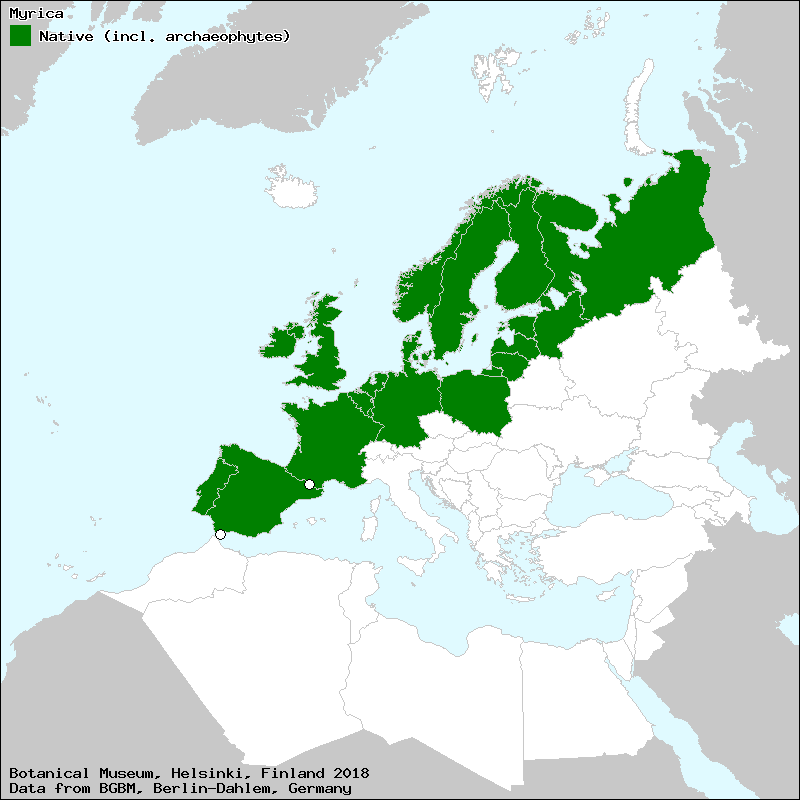 Source: Uotila, P. (2009): Myricaceae. – In: Euro+Med Plantbase - the information resource for Euro-Mediterranean plant diversity.