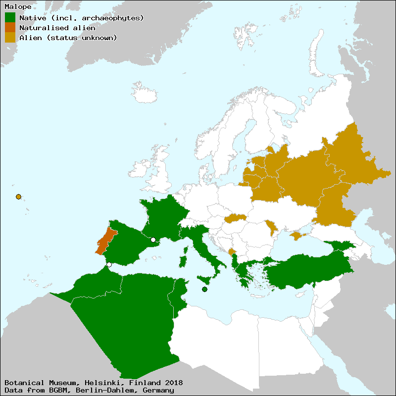 Source: Valdés, B. (2011): Malvaceae. – In: Euro+Med Plantbase - the information resource for Euro-Mediterranean plant diversity.