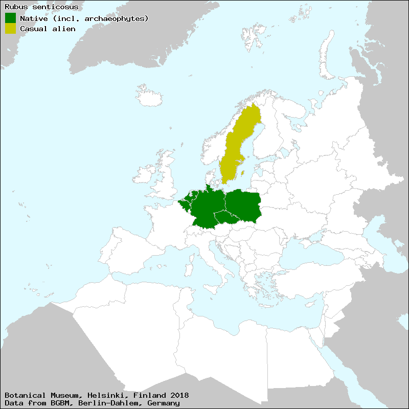 Kurtto, A. & Weber, H. E. (2009): Rubus. – In: Kurtto, A. (ed.): Rosaceae. Euro+Med Plantbase - the information resource for Euro-Mediterranean plant diversity. This work is licensed under a Creative Commons Attribution-ShareAlike 3.0 Unported license (CC-By-SA-3.0 Unported).