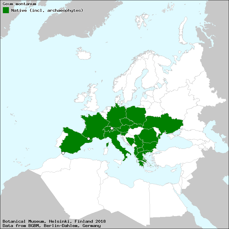 cariofilada de montaña (Spanish, Castillian), cariofilata montana (Spanish, Castillian), clavelada de Roncesvalles (Spanish, Castillian), gèum muntanyenc (Catalan), herba benta (Portuguese), sanamunda de los Alpes de flor pequeña (Spanish, Castillian)[Credits] |