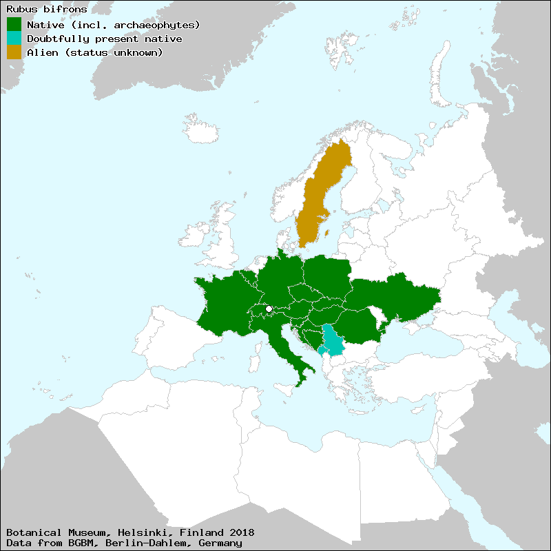 Kurtto, A. & Weber, H. E. (2009): Rubus. – In: Kurtto, A. (ed.): Rosaceae. Euro+Med Plantbase - the information resource for Euro-Mediterranean plant diversity. This work is licensed under a Creative Commons Attribution-ShareAlike 3.0 Unported license (CC-By-SA-3.0 Unported).