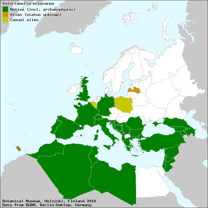 Raab-Straube, E. von (2017+): Valerianella. – In: Raab-Straube, E. von & Henning, T. (2017+): Valerianaceae. Euro+Med Plantbase - the information resource for Euro-Mediterranean plant diversity. This work is licensed under a Creative Commons Attribution-ShareAlike 3.0 Unported license (CC-By-SA-3.0 Unported).