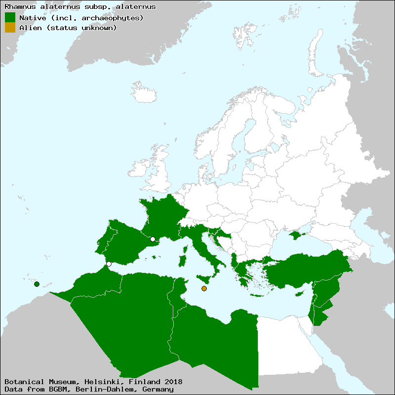 Source: Henning, T. & Raab-Straube, E. von (2016): Rhamnaceae. – In: Euro+Med Plantbase - the information resource for Euro-Mediterranean plant diversity.