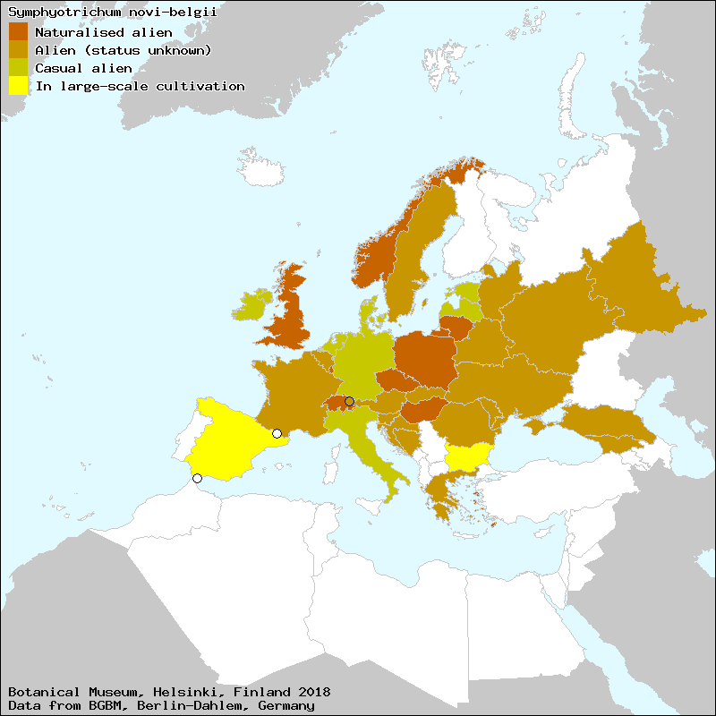 Aster de la Nouvelle-Belgique (French), Aster de Virginie (French), Aster des jardins (French), Aster nowobelgijski (Polish), Astra novobelgická (Slovak), Astro americano (Italian), Höstaster (Swedish), Hvězdnice novobelgická (Czech), Jaunbeļģijas mīkelīte (Latvian), Michaelmas-Daisy (English), Neubelgien-Aster (German), Neubelgische Aster (German), Nieuwnederlandse aster (Dutch), Õiekas aster (Estonian), Virginijska nebina (Slovene), Айстра вiргiнська (Ukraine), Астра новобельгийская (Russian), Стелуцэ Белжия-ноуэ (Moldovian), Aster de la Nouvelle-Belgique (French), Aster de Nouvelle-Belgique (French), Aster wirginijski (Polish), cielo estrellado (Spanish, Castillian), jarilla de jardín (Spanish, Castillian), Jesenska nebina (Slovene), Marcinki wirginijskie (Polish), setembres (Catalan), setembrina (Catalan), varica de San José (Spanish, Castillian)[Credits] |