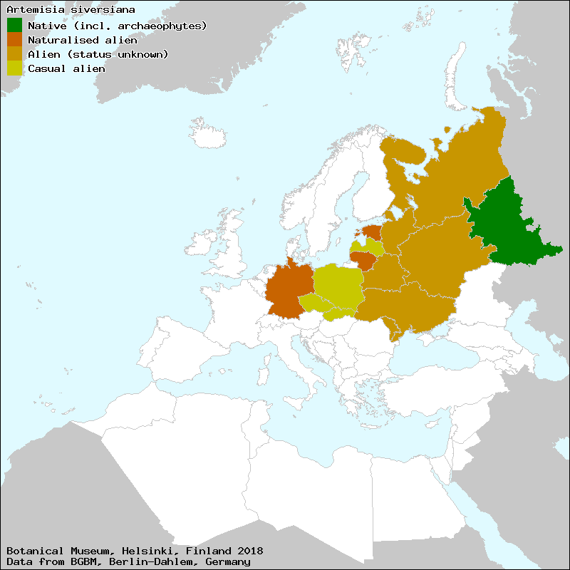 Östmalört (Swedish), Palina Sieversova (Slovak), Pelyněk Sieversův (Czech), Sieversi puju (Estonian), Sīversa vībotne (Latvian), Syverso kietis (Lithuanian), Пелин Сиверс (Moldovian), Полынь Сиверса (Russian)[Credits] |