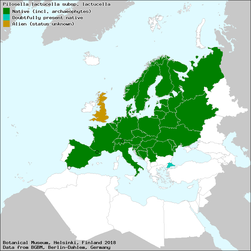 Source: Bräutigam, S. & Greuter, W. (2007-2009): Pilosella. – In: Greuter, W. & Raab-Straube, E. von (ed.): Compositae. Euro+Med Plantbase - the information resource for Euro-Mediterranean plant diversity.