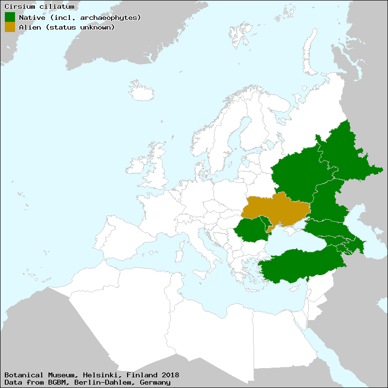 Бодяк реснитчатый (Russian), Кирпикли гангал (Azerbaijan), Осот вiйчастий (Ukraine), Пэлэмидэ чилиатэ (Moldovian), Տատասկ թարթիչավոր (Armenian)[Credits] |