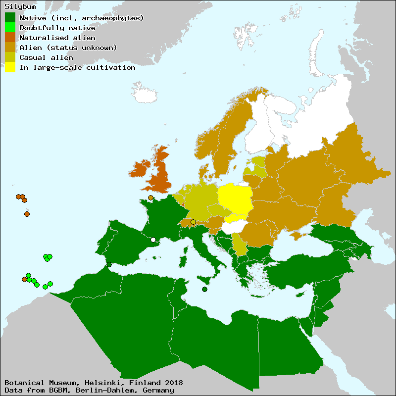 Cardo (Italian), Gjembgomari (Albanian), Maarjaohakas (Estonian), Mārdadzis (Latvian), Margainis (Lithuanian), Mariadistel (Dutch), Mariatistlar (Swedish), Mariendistel (German), Ostropest (Polish), Sylibe (French), Алагангал (Azerbaijan), Бял трън (Bulgarian), Расторопша (Russian), Розторопша (Ukraine), Կաթնափուշ (Armenian), גדילן (Israel (Hebrew)), גְּדִילָן (Israel (Hebrew)), خُرْفَيْش (Arabic), سَلْبين (Arabic), Milk Thistle (English)[Credits] |