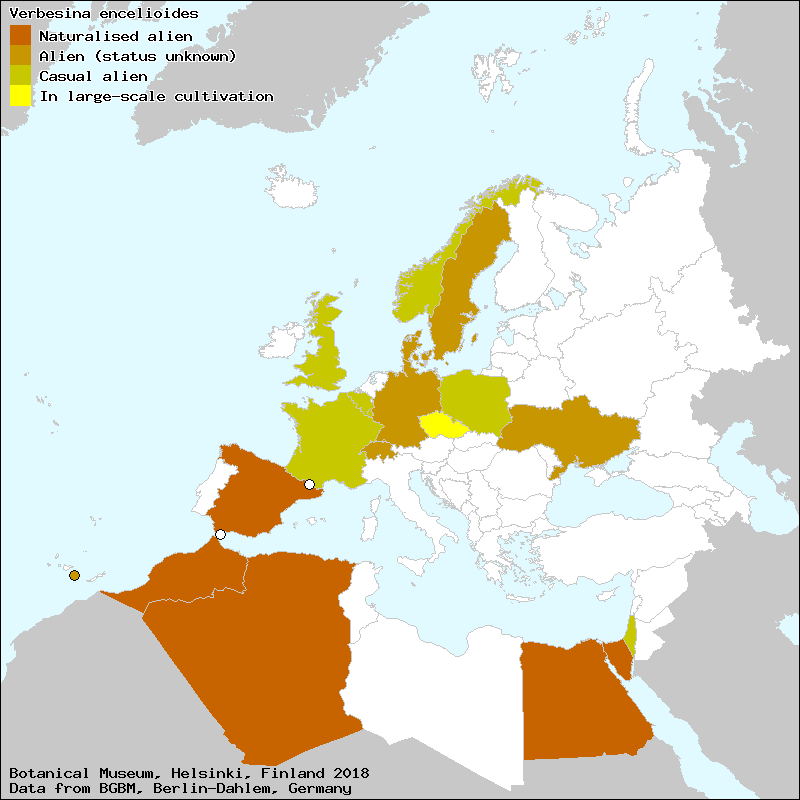 Verbesina (Swedish), Ксименезiя енцелiєвидна (Ukraine), כַּנְפוֹן זָהֹב (Israel (Hebrew)), כנפון זהוב (Israel (Hebrew)), ורבזינה זהובה (Israel (Hebrew))[Credits] |