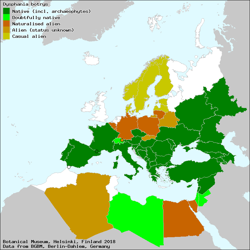Herbe à printemps (French), Ansérine à épis (French), Chénopode à grappes (French), ambrosía (Portuguese), ambrosía das boticas (Portuguese), ambrósia das boticas (Portuguese), ambrósia-das-boticas (Portuguese), bengranada (Catalan), bien granada (Spanish, Castillian), biengranada (Aragonese), biengranada (Spanish, Castillian), bodria (Spanish, Castillian), bodris (Catalan), bodris (Valencian), Botri (Italian), botris (Spanish, Castillian), botris-vulgar (Portuguese), botrys (Catalan), botrys (Portuguese), botrys ordinario (Portuguese), botrys vulgar (Portuguese), Chénopode botryde (French), druifkruid (Dutch), Drüsiger Gänsefuss (German), Egebladet Gåsefod (Danish), eikemelde (Norwegian), ekmålla (Swedish), erva-ambrósia (Portuguese), Farinello botri (Italian), gotris (Catalan), Grozdasta metlika (Slovene), guztori (Euskera), guztoria (Euskera), herba d´atacar la sang (Catalan), herba de la primavera (Catalan), herba del cuc (Catalan), herba del curch (Catalan), herba groga (Catalan), herba para atacar la sang (Catalan), herba xinxera (Catalan), herva pulgueira (Portuguese), herva-ambrosía (Portuguese), hierba amarilla (Spanish, Castillian), hierba ambrosía (Spanish, Castillian), hierba de primavera (Spanish, Castillian), hierba hormiguera (Spanish, Castillian), hierba racimosa (Spanish, Castillian), Klebriger Gänseguß (German), Kobar-hanemalts (Estonian), Komosa wonna (Polish), ljepljiva loboda (Croat), merlík hroznový (Czech), milengrana (Catalan), mil-en-grana (Catalan), milgranada (Spanish, Castillian), Minueri vilerrushi (Albanian), mrlík strapcový (Slovak), Pazienzia (Italian), quenopodio (Spanish, Castillian), Rubianka-libatop (Hungarian), sabia (Euskera), šimtagrūdė balanda (Lithuanian), smaržīgā balanda (Latvian), Tămâița (Roumanian), tammisavikka (Finnish), te bodris (Catalan), té botris (Majorcan), té de Valladolid (Spanish, Castillian), xinxera (Catalan), yerba amarilla (Spanish, Castillian), yerba racemosa (Spanish, Castillian), yerba racimosa (Spanish, Castillian), Χηνοπόδιον ο βότρυς (Greek), Ийли тәрә (Azerbaijani), марь душистая (Russian), Огниче (Bulgarian), Штир-Сэлбатик одорат (Moldovian)[Credits] |