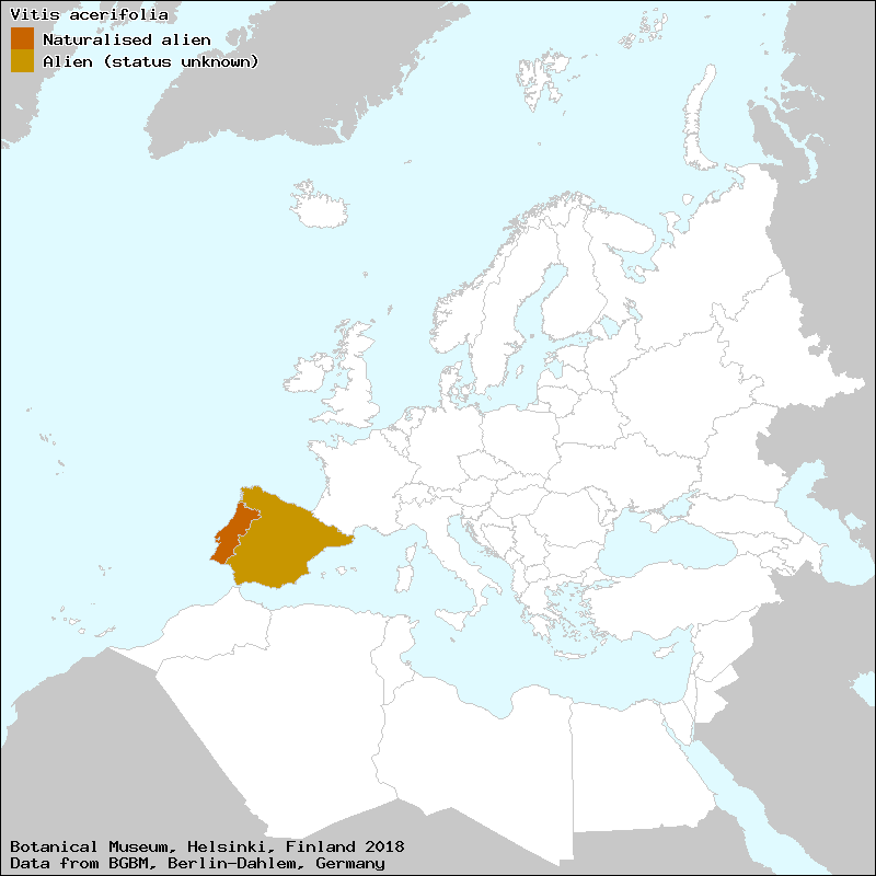 Ardenghi, N. M. G., Galasso, G. & Banfi, E. (2017): Vitaceae. – In: Euro+Med Plantbase - the information resource for Euro-Mediterranean plant diversity. This work is licensed under a Creative Commons Attribution-ShareAlike 3.0 Unported license (CC-By-SA-3.0 Unported).