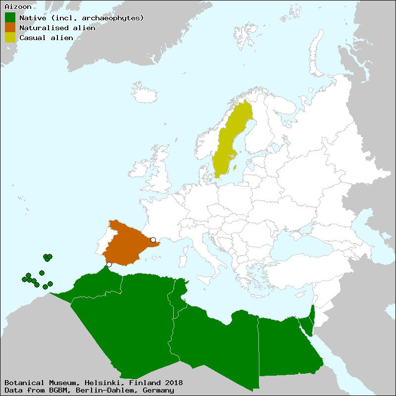 Source: Raab-Straube, E. von (2018): Aizoaceae. – In: Euro+Med Plantbase - the information resource for Euro-Mediterranean plant diversity.